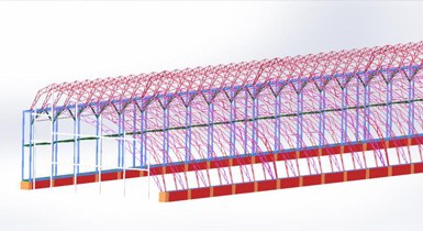 該溫室骨架為熱鍍鋅鋼材焊接,后墻為熱鍍鋅鋼材組裝,采用彩鋼板后墻保溫和相變蓄熱系統(tǒng)代替土墻和磚墻等蓄熱體,解決裝配式日光溫室的蓄放熱問(wèn)題,實(shí)現(xiàn)日光溫室部件的工廠化生產(chǎn)和安裝的標(biāo)準(zhǔn)化裝配。